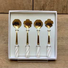 Conjunto 4 Colheres para Chá Cabo Flower Dourado e Branco