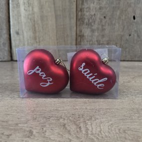 Conjunto 2 corações fosco para pendurar Saúde e Paz