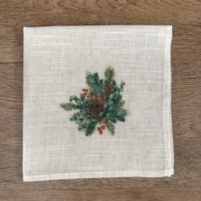 Guardanapo Natalino Linho Off Folhas e Pinha