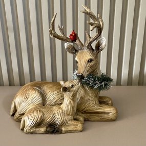 Rena Decorativa Deitada com Filhote - 28 cm