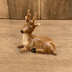 Rena Deitada Decorativa em Cerâmica Caramelo M