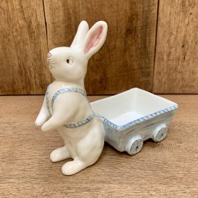 Coelho com Carroça em Cerâmica Branca Feita à Mão