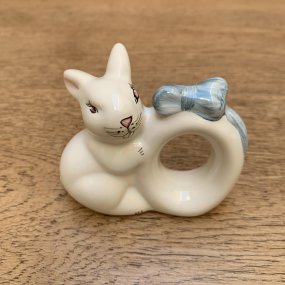 Porta Guardanapo Coelho com Laço Azul em Cerâmica