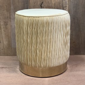 Pufe Decorativo Bege com Detalhe Dourado