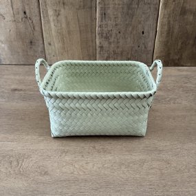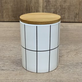 Potiche Branco com Listras Pretas e Tampa de Bambu - P