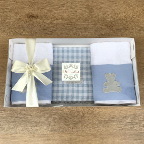 Kit Toalhas e Necessaire Azul Bebê - 3 peças