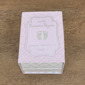 Caixa Primeira Pegada Matelassê Rosa Bebê