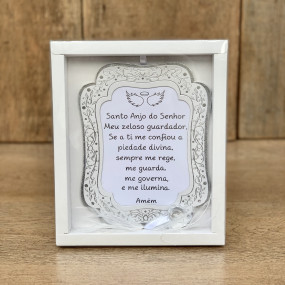 Placa Oração Santo Anjo Branca