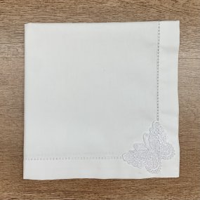 Guardanapo com Ajour Branco e Guipir Borboleta